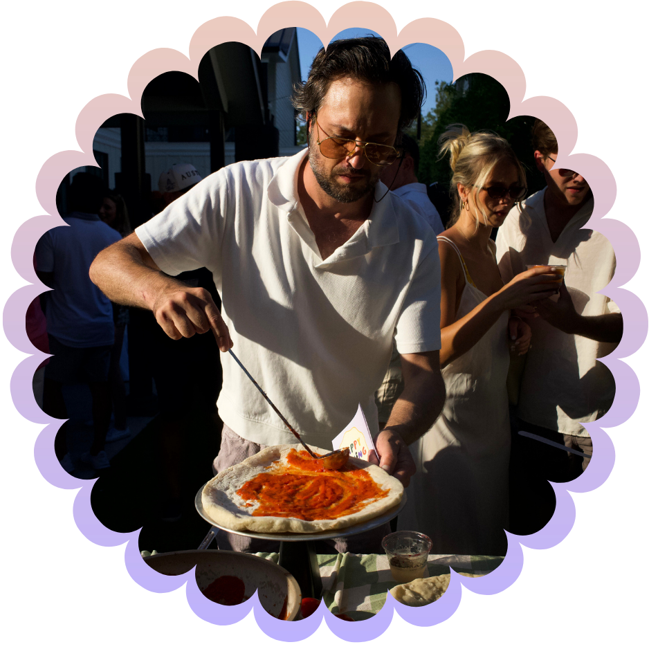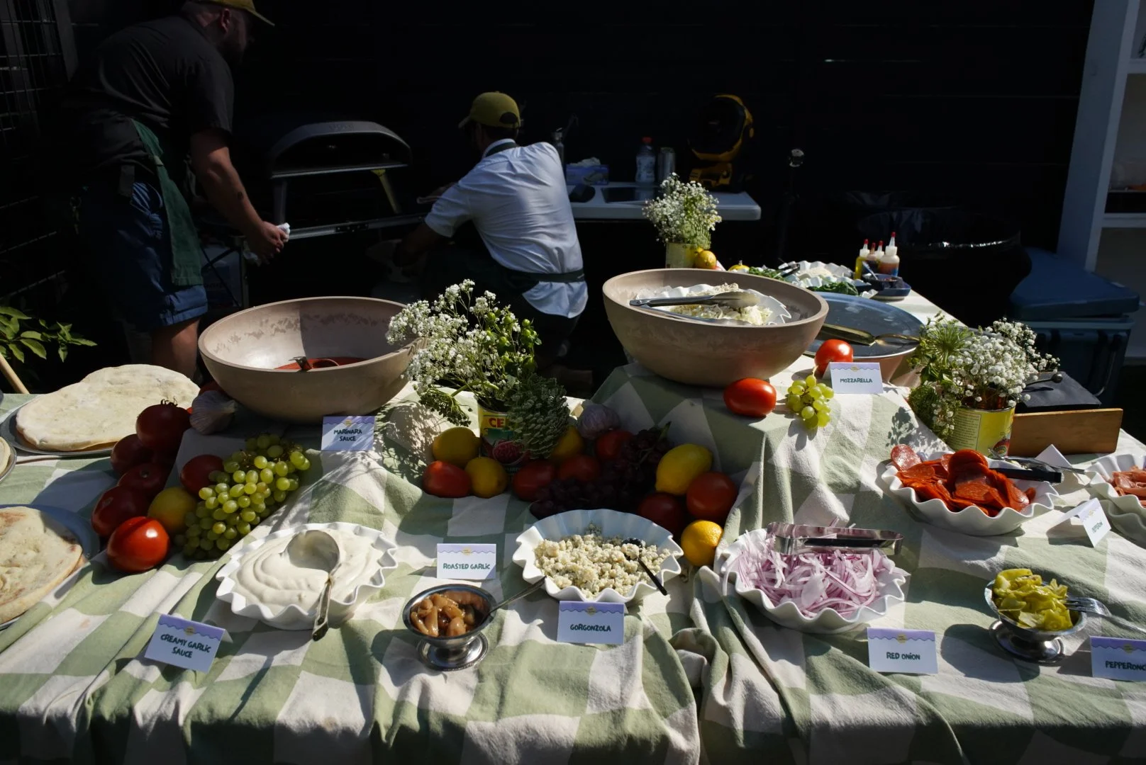 Your choice of ingredients and garnishes for your guests to make their own 12" gourmet pizzas on a scratch-made New York style dough and fired by a chef in an Ooni oven onsite. Also includes a side Chopped Salad.
